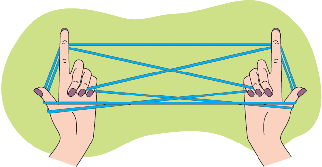 პირველი მოთამაშე: ძაფში გაუყარეთ ორივე ხელი, შემდეგ თითოეულზე კიდევ შემოიხვიეთ ძაფი.