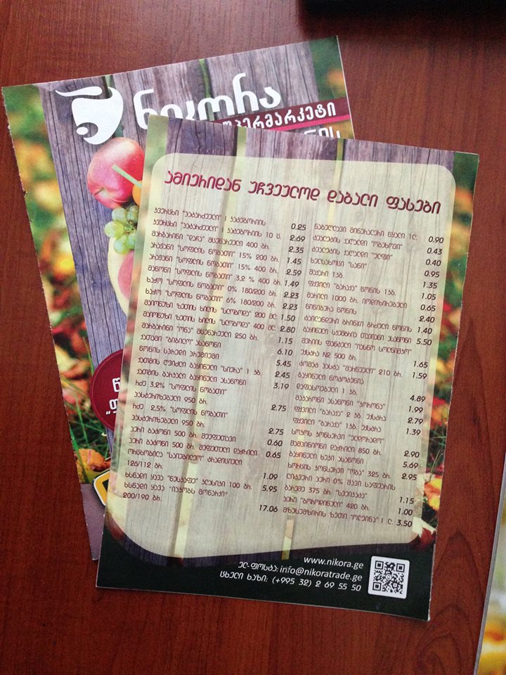 მოკლედ, გუშინ შინ პარკებით დაბრუნებულს ბავშვები შინ არ დამხვდნენ, მაგიდაზე კი დედაჩემის მიერ მოტანილი ფასდაკლებების ბუკლეტი დამხვდა. ერთი თვალის შევლებით მივხვდი, რომ იმ პროდუქტების ჩამონათვალი იყო, რომელსაც ყოველდღიურად ვყიდულობთ. გვერდით კი ფასები ეწერა.