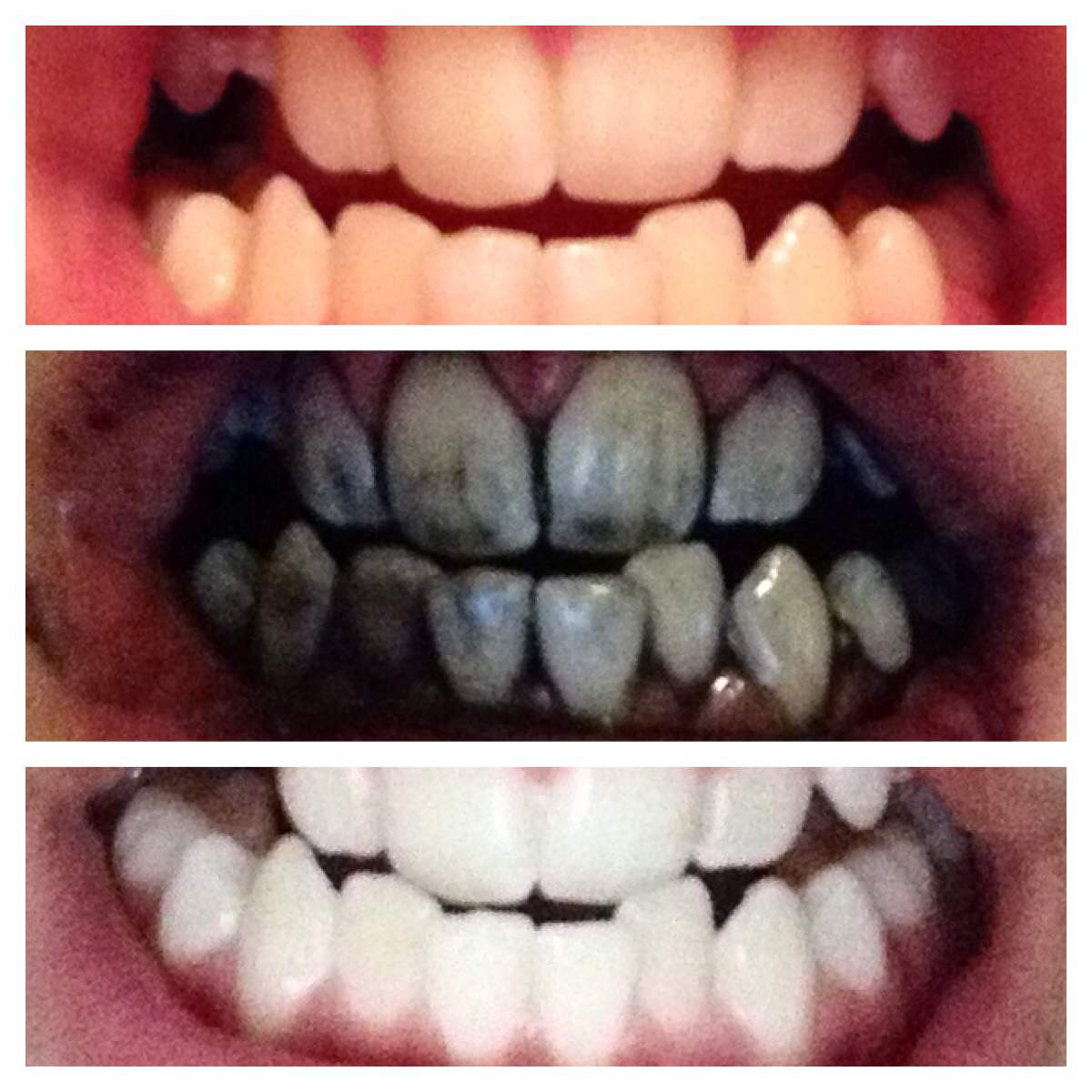 დაასველეთ კბილის ჯაგრისი, მოაყარეთ დაფქული აქტივირებული ნახშირი და 3-4 წუთის განმავლობაში გაიხეხეთ კბილები.