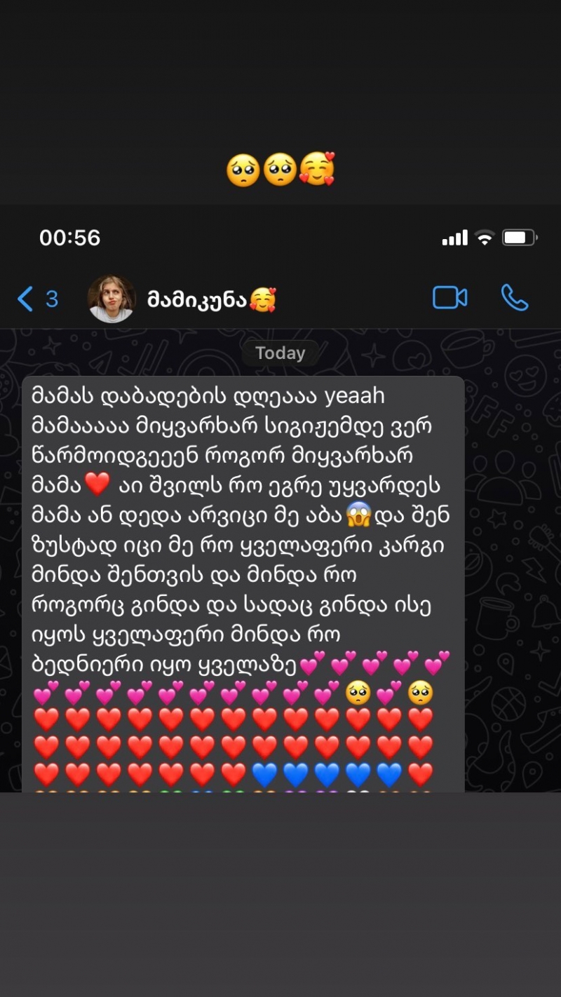 მსახიობი გიორგი მახარაძე იუბილარია. მან საკუთარ „ინსტაგრამზე“ მეგობრებისა თუ ახლობლებისგან მიღებული არაერთი მილოცვა გამოაქვეყნა, მათ შორის შვილის, 10 წლის ელენე მახარაძეც იყო. ელენემ მამას დაბადების დღეზე ემოციური წერილი მისწერა: „მამას დაბადების დღეა, მამა, მიყვარხარ სიგიჟემდე, ვერ წარმოაიდგენ, როგორ მიყვარხარ, მამა. აი, შვილს რომ ასე უყვარდეს მამა ან დედა, არ ვიცი მე. და შენ ზუსტად იცი მე რომ ყველაფერი კარგი მინდა შენთვის, მინდა, რომ როგორც გინდა და სადაც გინდა ისე იყოს ყველაფერი, მინდა, რომ ყველაზე ბედნიერი იყო“ - წერს ელენე წერილში.