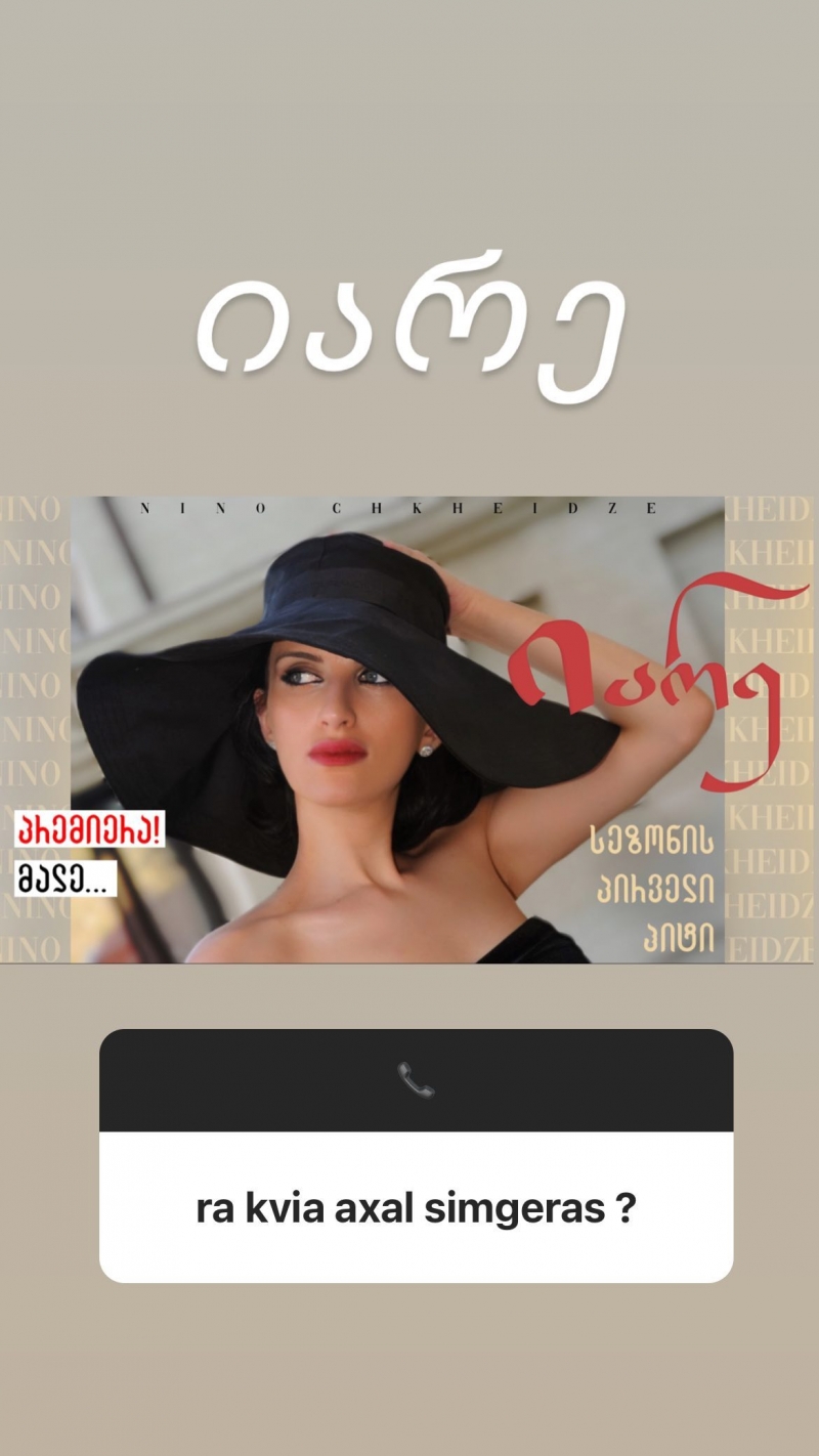 ამჯერად ნინო ჩხეიძე გამომწერების კითხვებს პასუხობს, რომლებიც მის მიმართ კომპლიმენტებს არ იშურებენ: „ძალიან გამსგავსენ ლედი დაიანას“, „ჩემი ერთ-ერთი უსაყვარლესი მომღერალი ხარ“, „ჩემი იდეალი ხარ“- წერენ „ინსტაგრამზე“.