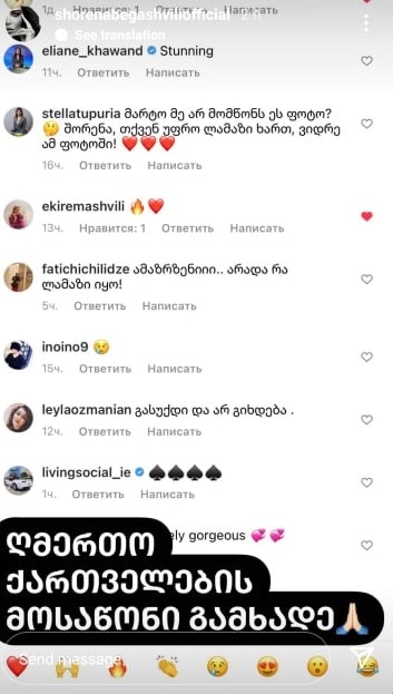 როგორც ჩანს, შორენა ბეგაშვილი ფოტოების გამოქვეყნებისას არაერთ ნეგატიურ შეფასებას იღებს. მან გამომწერების მიერ დაწერილი უარყოფითი კომენტარები გამოაქვეყნა, სადაც წერია, რომ ის ადრე უფრო ლამაზი იყო, ვიდრე ახლა. „ღმერთო, ქართველების მოსაწონი გამხადე“ - წერს შორენა ბეგაშვილი. მსგავსი შინაარსის კომენტარები მან რამდენიმე თვის წინაც გააზიარა და აღნიშნა, რომ ქართველებისგან ხშირად იღებს აგრესიულ შეტყობინებებს, უცხოელები კი მის მიმართ კომპლიმენტებს არ იშურებენ.