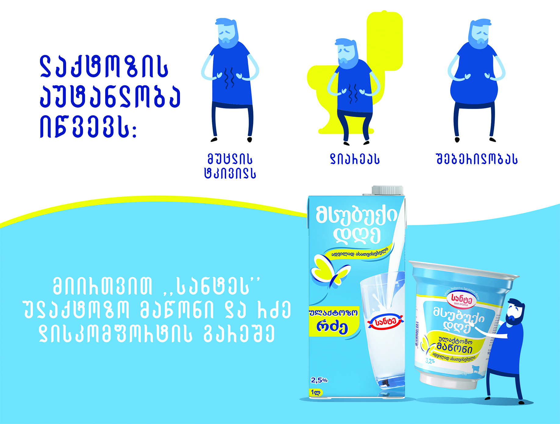 ქართული ულაქტოზო მაწონი - "სანტე ჯი ემ-თი" პროდუქტების ახალი ხაზის „მსუბუქი დღე“ უახლესი პროდუქტია. ყოველგვარი შიშის და დისკომფორტის გარეშე, დღის ნებისმიერ მონაკვეთში, როგორც ლაქტოზის აუტანლობის მქონე პირებისათვის, ისე საქმიანი ადამიანებისათვის. რძიანი ყავა, საუზმეზე მაწონი ან მაწვნის დესერტები უკვე აღარ წარმოადგენს დაბრკოლებას დღის არცერთ მონაკვეთში... დისკომფორტი, რომელიც ადამიანებს რძის პროდუქტების მიღებიდან 2 საათის განმავლობაში უვითარდებათ, ლაქტოზის აუტანლობის სახელითაა ცნობილი. ეს მოვლენა მოზრდილი მოსახლეობის 70%-ს აწუხებს და გენეტიკურადაა განპირობებული, თუმცა დღეს არცერთი სინდრომი და დაავადება კლასიკური ფორმით თითქმის აღარ გვხვდება. შესაბამისად, ლაქტოზის აუტანლობა უკვე ხშირი მოვლენაა ბავშვებშიც. ლაქტოზის აუტანლობა დაავადება არ არის, თუმცა ასაკის მატებასთან ერთად, თუ არ ჩავთვლით ჩვილობის პერიოდს, სინდრომი ძლიერდება.