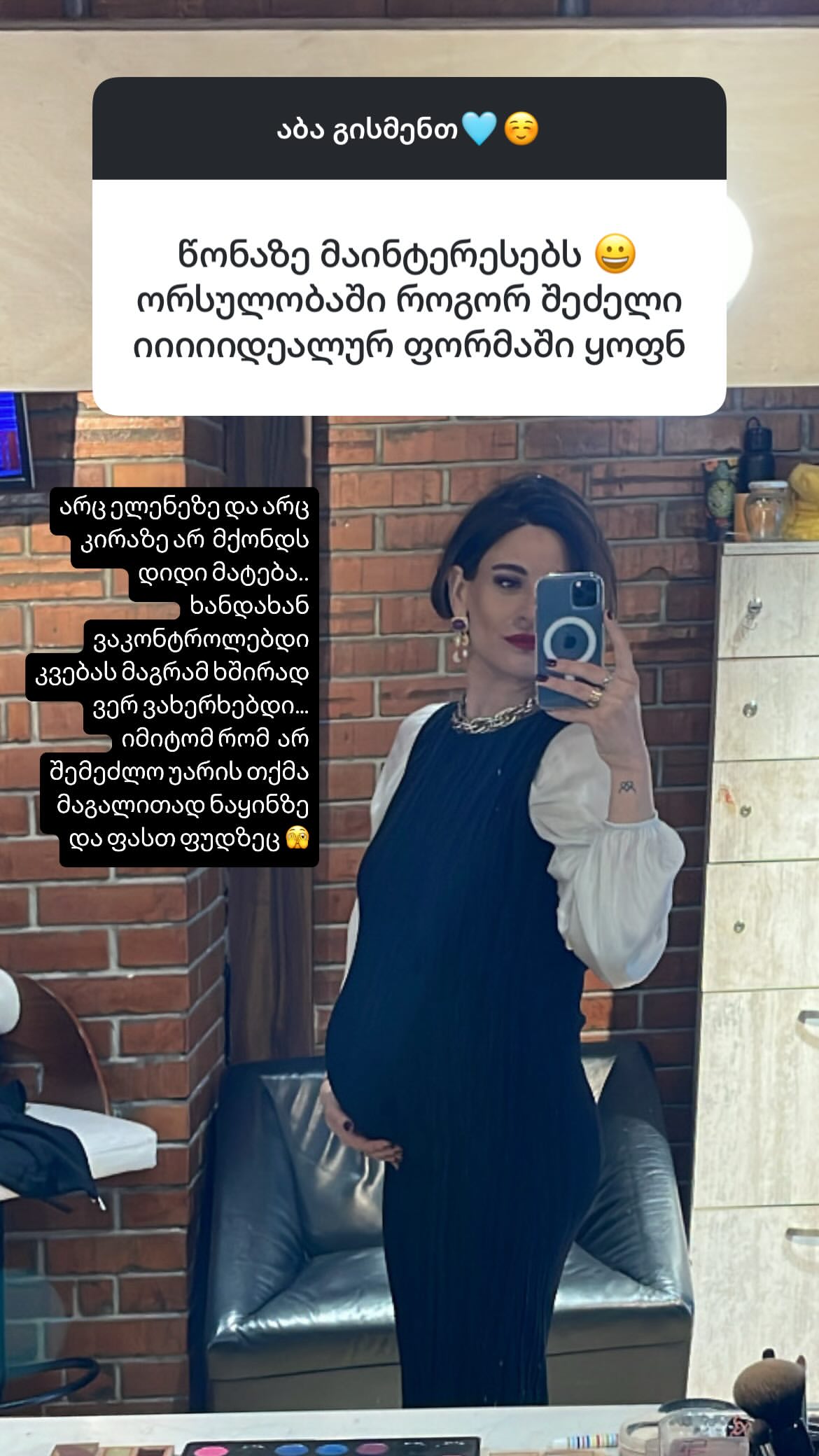 "ბევრი არ მომიმატია ორსულობის პერიოდში, თუმცა კიდევ დამრჩა რამდენიმე კილოგრამი დასაკლები.