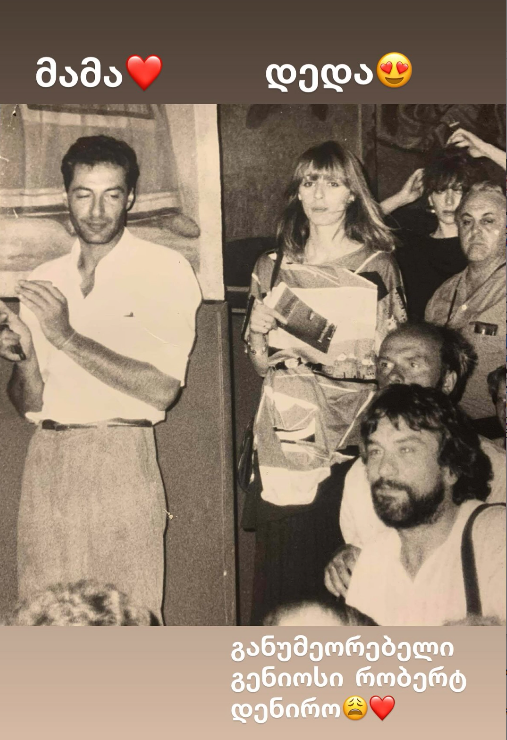 მსახიობ ზურა ყიფშიძის ქალიშვილი ლენუკა ყიფშიძე მშობლების და რობერტ დე ნიროს საერთო ფოტოს აქვეყნებს. ფოტოზე ზურა ყიფშიძე, ზურას მეუღლე, ლელა გოცირიძე და ლეგენდარული ამერიკელი მსახიობი რობერტ დე ნირო არიან.