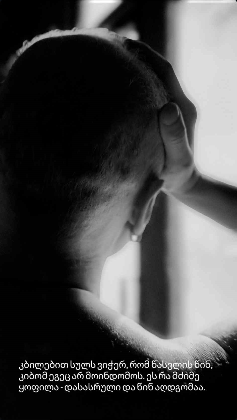 მე მივხვდი, რატომ დავიწყე მთაში სიარული, ეს იყო ჩემი გლოვის რიტუალი, მარტო ვრჩებოდი საკუთარ თავთან. მეშინია, როგორ აისახება ეს ექვსი თვე ჩემი დარჩენილი ცხოვრების ხარისხზე.
