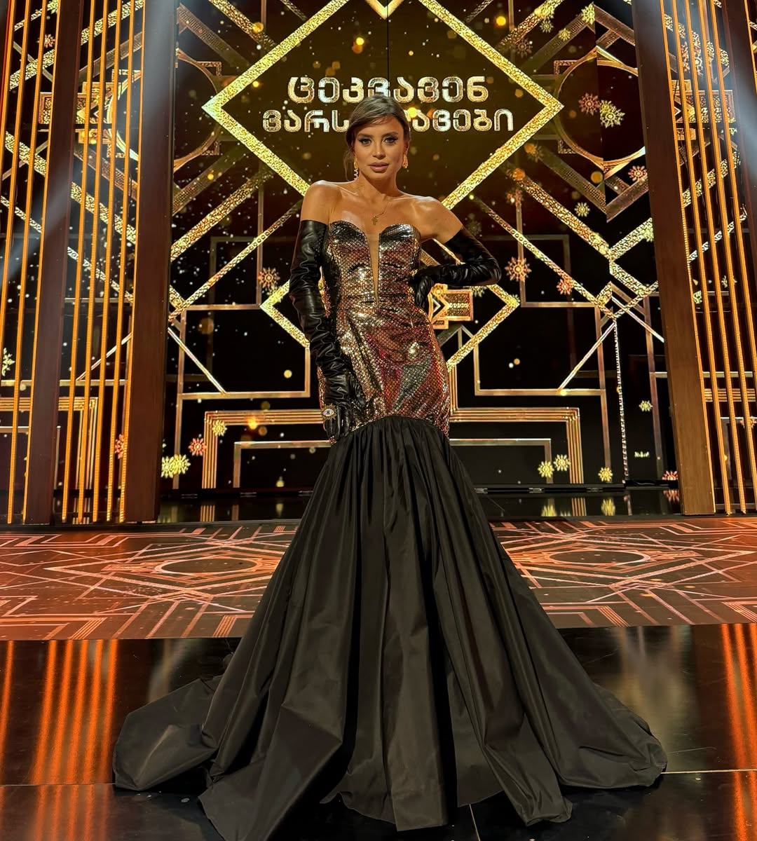 ტელეწამყვანმა ეკო ფანგანმა 31 დეკემბრის საღამო ტელეეკრანზე გაატარა. მან ახალი წელი "ცეკვავენ ვარსკვლავების" სცენიდან მიულოცა მაყურებელს. ეკო არაჩვეულებრივად გამოიყურებოდა, მან 2026 წლის მთავარი ტრენდი ოქროსფერი კაბა მოირგო.