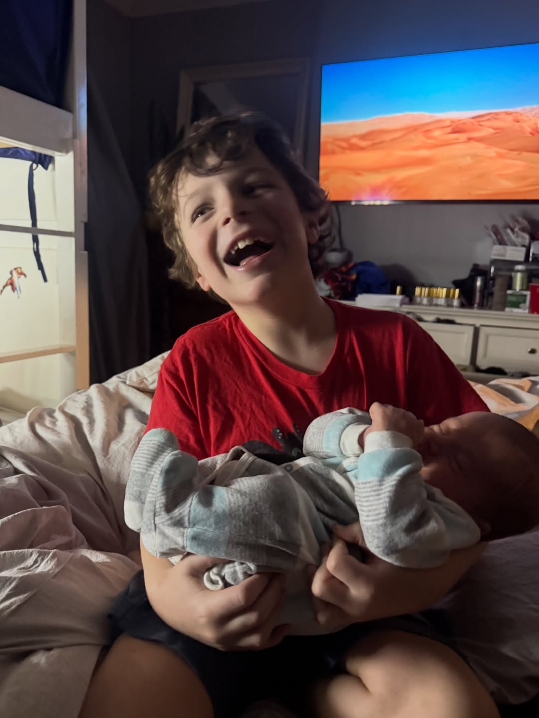 "როგორ ვამაყობ ოვის რომ არ აქვს ეჭვიანობის მომენტები. მგონია, რომ უმნიშვნელოვანესია, უფროს შვილს ათმაგი ყურადღება მიაქციო და სულ გაუმეორო, რომ მისი უმცროსი ძმა მასზე გიჟდება. ეს თავიდანვე დიდ პოზიტივს და მჭიდრო კონტაქტს ამყარებს ძმებს შორის. უკვე აქვე ეტყობა, რომ ძალიან განსხვავდებიან ხასიათებით. ერთი სული მაქვს, შიოს ხასიათი გავიცნო", - წერს ნუკი კოშკელიშვილი და შვილების ფოტოებს აქვეყნებს.