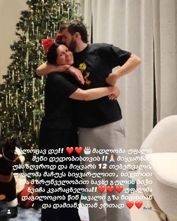 „გილოცავ, დე! მადლობა უფალს შენი დედობისთვის! მიყვარხარ უსაზღვროდ და მიყვარს 12 თებერვალი, უფალმა მაჩუქა სიყვარულით, სიკეთითა და მზრუნველობით სავსე გულის ბიჭი! უფალმა დაგილოცოს წინ სავალი გზა ნიცასთან და დამიანესთან ერთად“, - წერს მაკა ლუკავა.