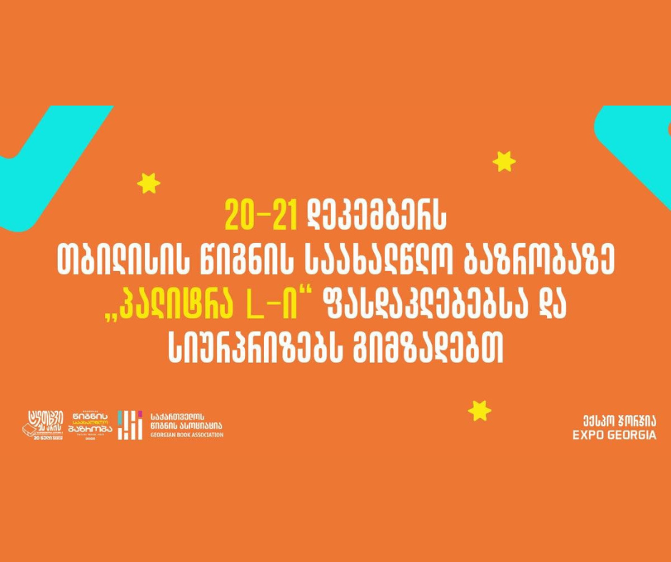 20-21 დეკემბერს თბილისის წიგნის საახალწლო ბაზრობაზე „პალიტრა L“-ი ფასდაკლებებსა და სიურპრიზებს გიმზადებთ