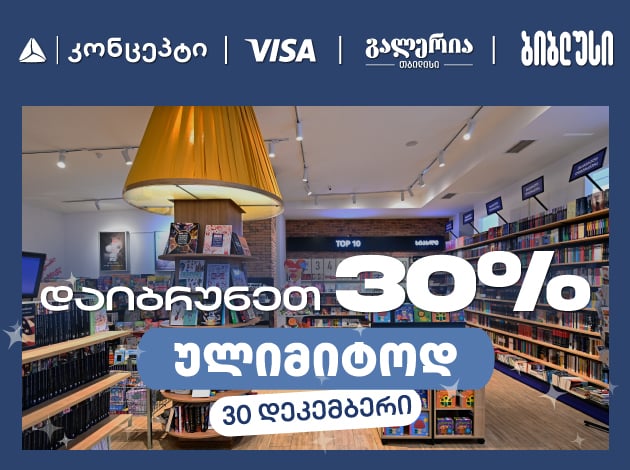 დაიბრუნეთ 30% ქეშბექი გალერეა თბილისის „ბიბლუსში“, თიბისი კონცეპტ Visa ბარათით გადახდისას